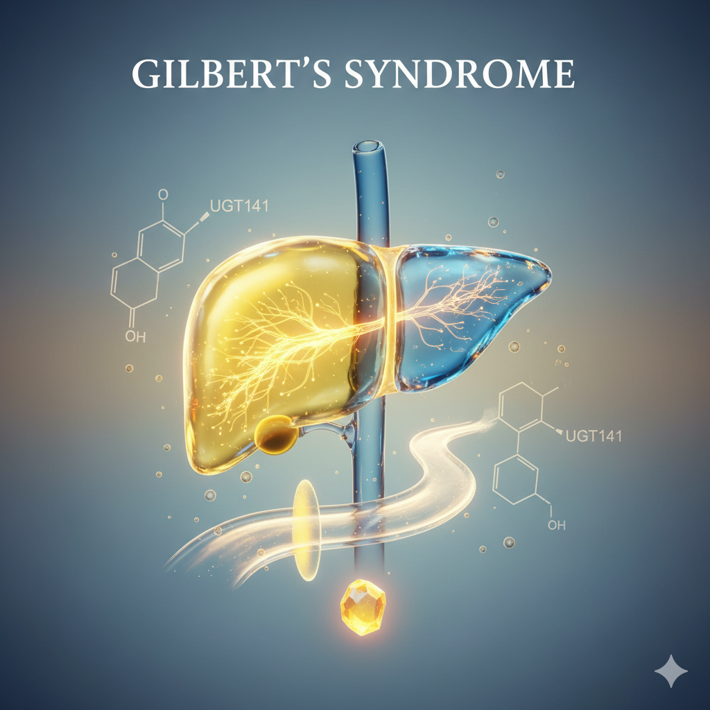 길버트 증후군(Gilbert's syndrome)은 간에서 빌리루빈(bilirubin)이라는 물질을 제대로 처리하지 못하는 유전성 질환입니다. 빌리루빈은 적혈구가 분해될 때 생기는 노란색 색소인데, 이게 혈액에 쌓이면 피부와 눈이 노랗게 변하는 황달(jaundice)이 나타나죠. 전 세계 인구의 3~7%가 이 증후군을 가지고 있지만, 대부분 증상이 가볍거나 없어서 모르고 사는 경우가 많아요. 하지만 스트레스, 탈수, 금식, 감염, 또는 심지어 월경 같은 요인으로 갑자기 악화될 수 있어요! 😱 마치 간이 "오늘은 쉬고 싶어!"라고 외치는 거랍니다.